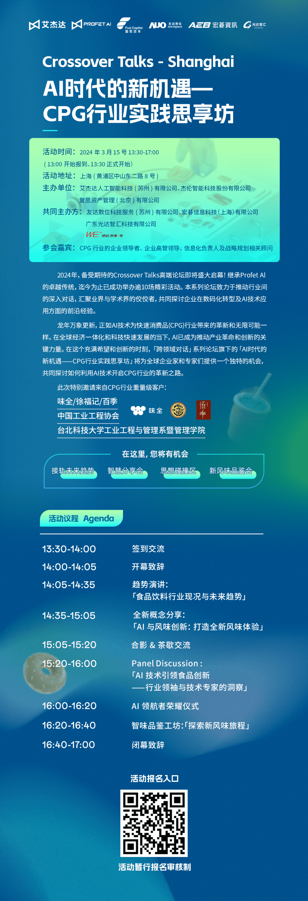 🌈 在这里,您将接轨最前沿的 AI 趋势,一窥 CPG 行业的未来蓝图。顶尖大脑将深度解读 AI 在食品行业的前沿创新应用,分享那些令人拍案叫绝的实战经验和策略。