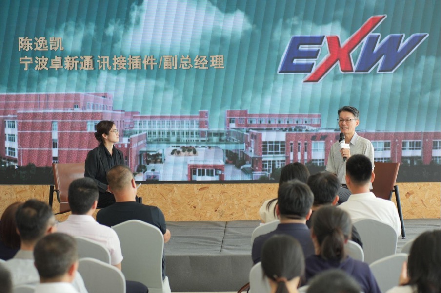 Profet AI 销售总监柳可芸与宁波卓新通讯接插件陈逸凯副总经理对谈分享AI工作坊提升良率与改变企业文化经验